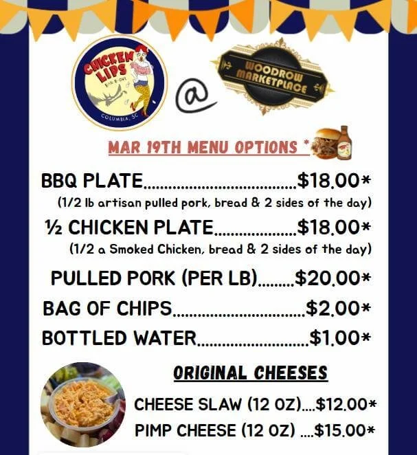 Soda Belle and Chicken Lips BBQ will be in our parking lot at 7500 Woodrow St in Irmo from noon to 6pm serving up delicious barbecue and Gourmet Sodas with a Southern Twist… Come have lunch and a drink or 3! 😆👌