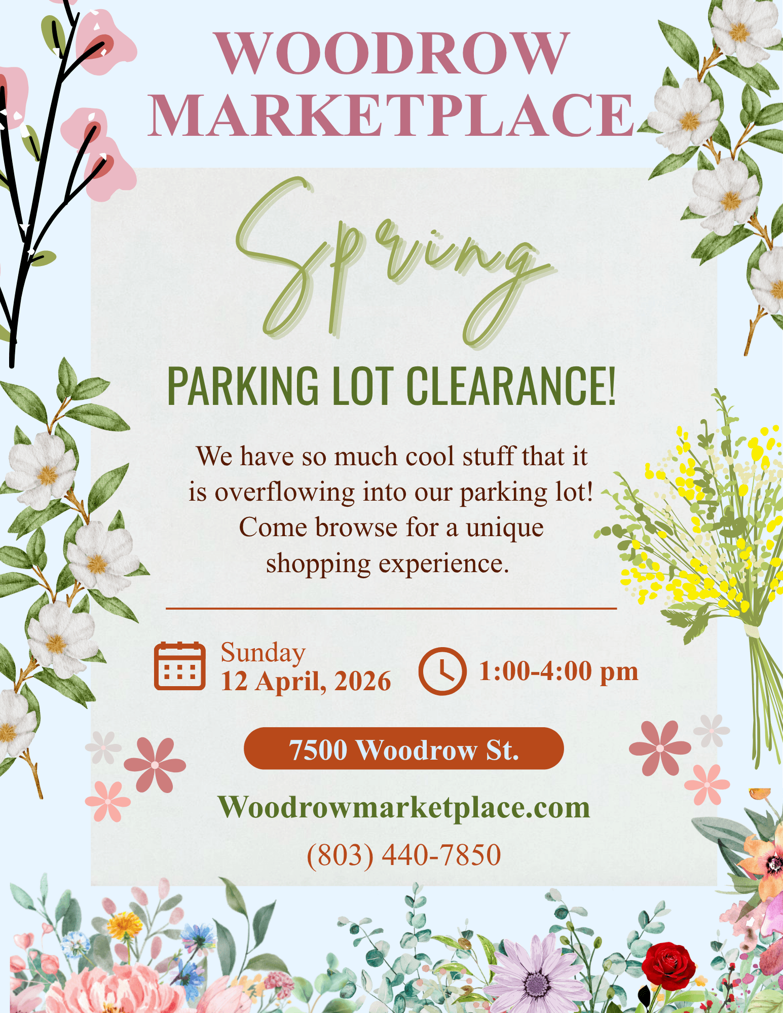 Join us on Sunday, April 12 from 1-4 pm for our Annual Woodrow Marketplace Spring Parking Lot Clearance!